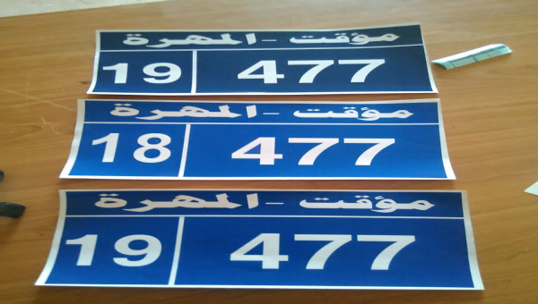 وقال المكتب الإعلامي لشرطة المهرة أن شرطة شحن تمكنت وبقيادة العقيد كامل زعبنوت مدير أمن المديرية والملازم علي مصدع من إلقاء القبض على شخص من أبناء محافظة ريمة يستغل عمله في محل خاص به لتزوير لوحات السيارات.