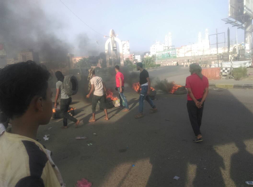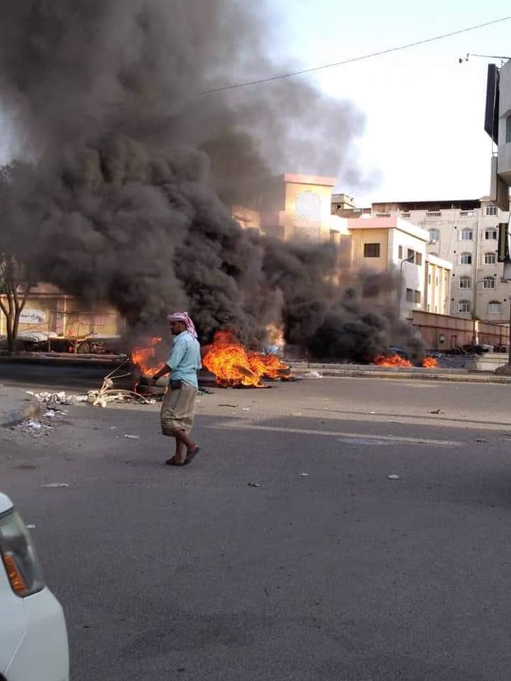 وخرج المئات من ابناء عدن في الشوارع الرئيسية بالمدينة غاضبين على تدهور العملة وانهيار الاقتصاد وارتفاع الأسعار حيث قامو باحراق الإطارات وقطع الشوارع واحداث فوضى عارمة ضد الحكومة التي وُصفت بالفاسدة.