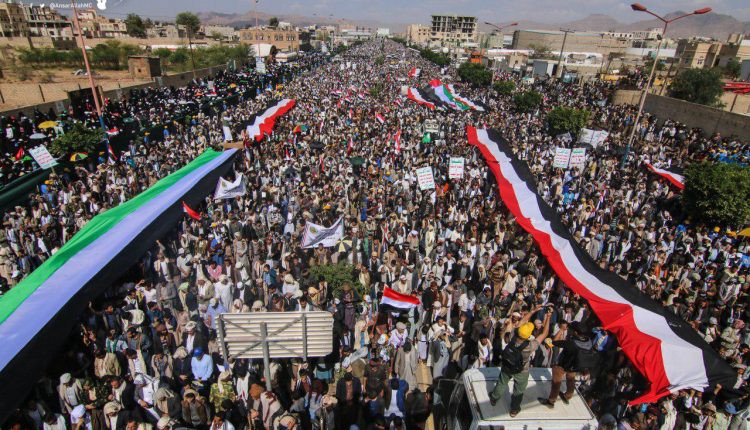 حيث شهدت العاصمة صنعاء عصر اليوم، مسيرة جماهيرية كبرى تأييداً ودعما للعملية العسكرية البطولية “طوفان الأقصى” المباركة ضد كيان العدو الصهيوني .