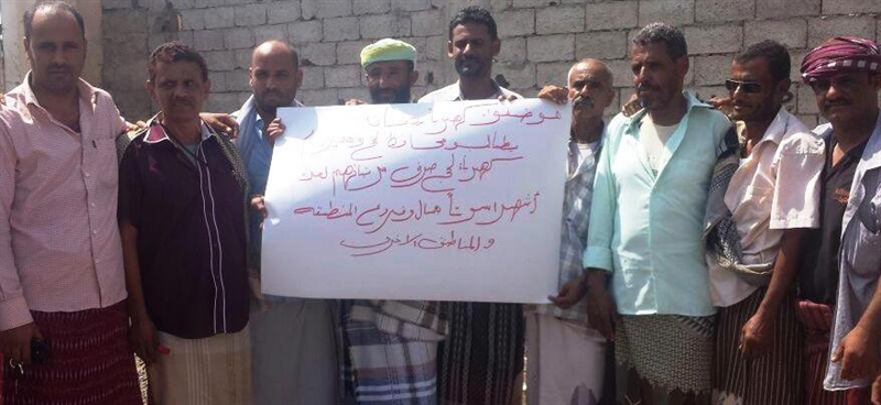 عمال وموظفي مؤسسة كهرباء ردفان ينظمون وقفة إحتجاجية أمام المؤسسة منددين بصرف مرتباتهم