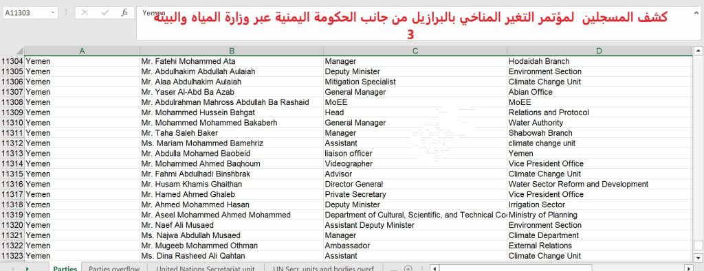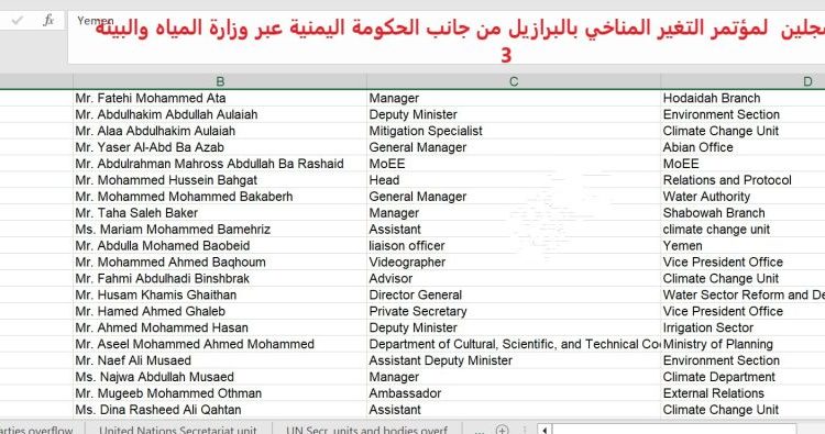 وبحسب مصادر مطلعة، فقد أوفدت الحكومة 140 مشاركاً إلى مؤتمر المناخ الذي استضافته البرازيل، ما أدى إلى حالة من الدهشة لدى المنظمين، الذين فوجئوا بتوزيع أسماء الوفد اليمني على ثماني قوائم، يضم كل منها 20 اسماً.