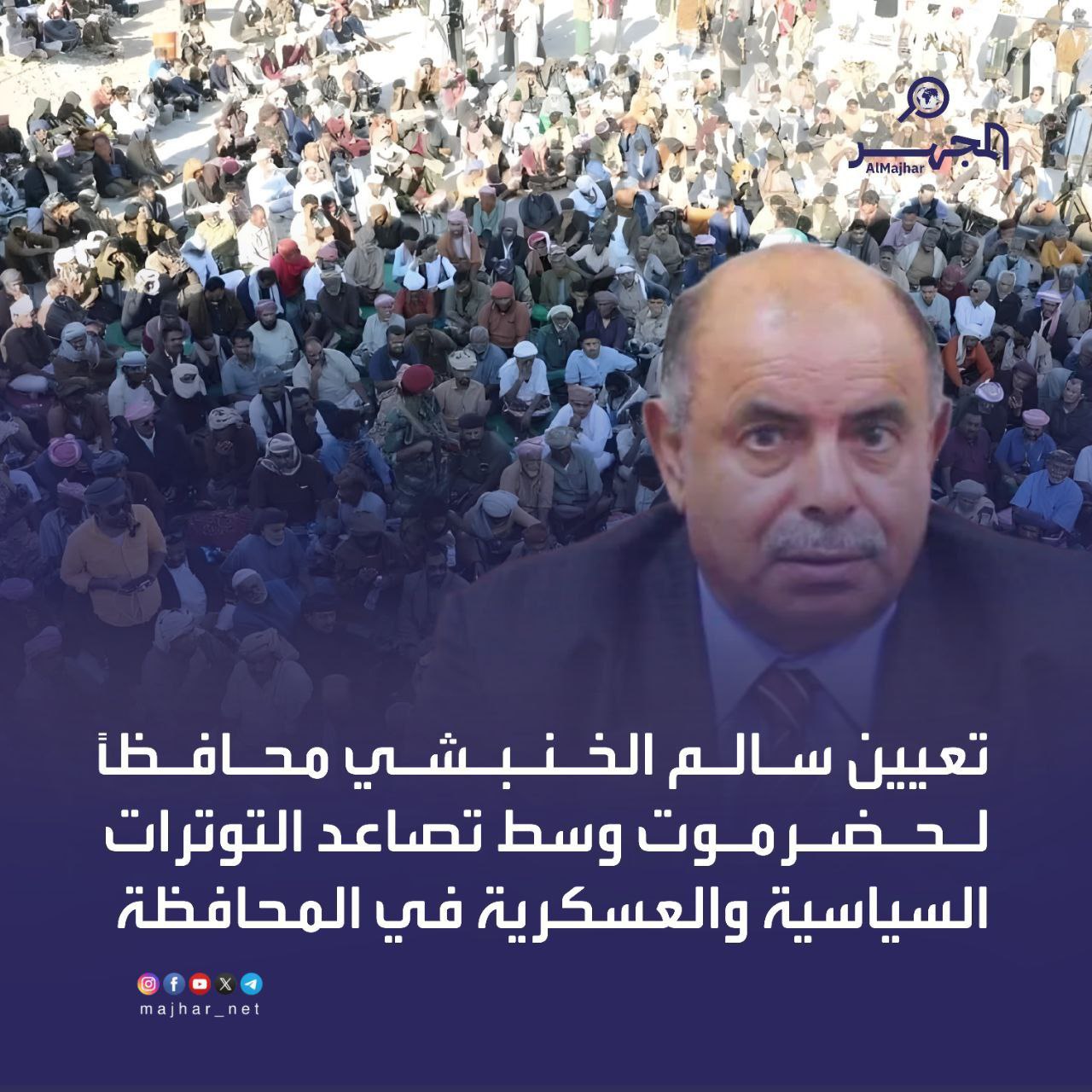 مع تضخم الصراع في المحافظة ومحاولة السعودية تهدئة الوضع أصدر رئيس مجلس القيادة الرئاسي رشاد العليمي، الخميس، قرارا جمهوريا بتعيين سالم أحمد سعيد الخنبشي محافظًا لمحافظة حضرموت، وذلك استنادًا إلى الدستور والقانون ومرجعيات المرحلة الانتقالية، وبعد موافقة مجلس القيادة.